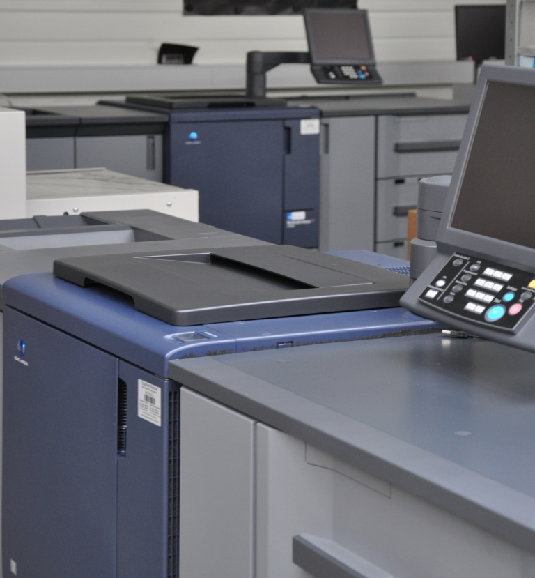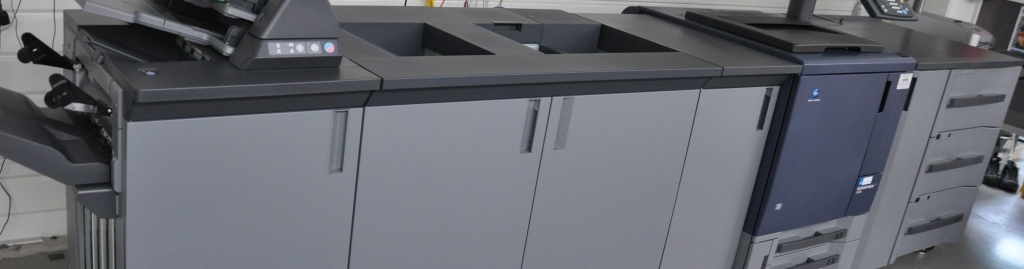 Seit November 2014 haben wir zwei neue Druckmaschinen und damit unseren Bereich Digitaldruck verstärkt. Es sind zwei KonicaMinolta bizhub PRESS C1060, ein Exemplar mit Broschürenfinisher.